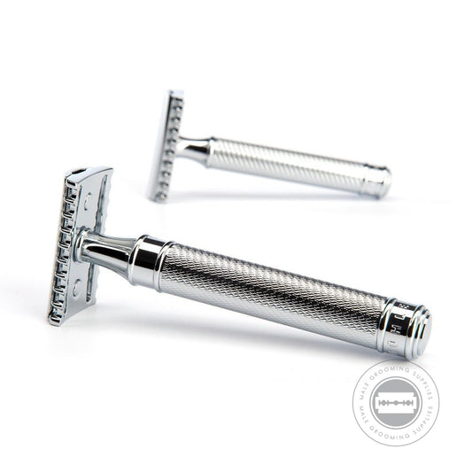 This is a mild razor but very efficient. My best and most comfortable shave. Male Grooming Supplies were excellent to deal with, great products and prices and delivery was prompt. I have already bought a brush from them and will continue to use them as my go to site . Many thanks!