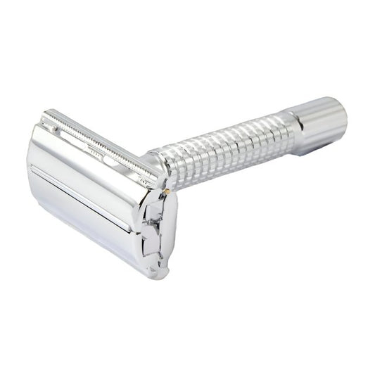 This is a mild razor but very efficient. My best and most comfortable shave. Male Grooming Supplies were excellent to deal with, great products and prices and delivery was prompt. I have already bought a brush from them and will continue to use them as my go to site . Many thanks!