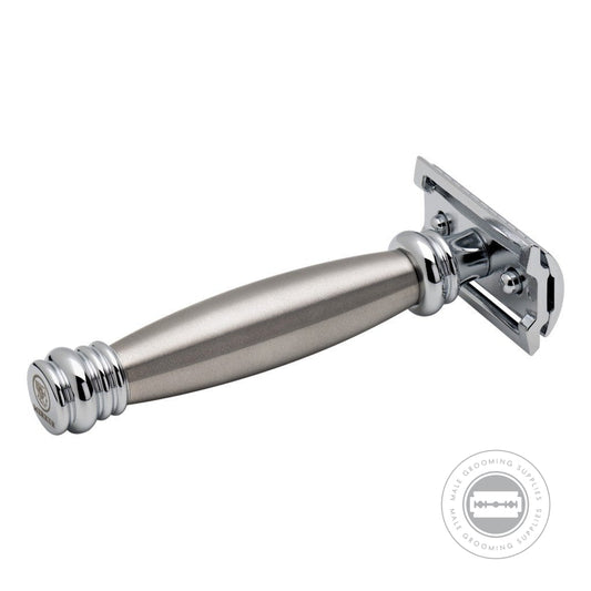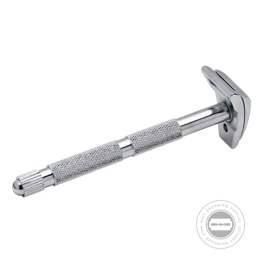 This is a mild razor but very efficient. My best and most comfortable shave. Male Grooming Supplies were excellent to deal with, great products and prices and delivery was prompt. I have already bought a brush from them and will continue to use them as my go to site . Many thanks!